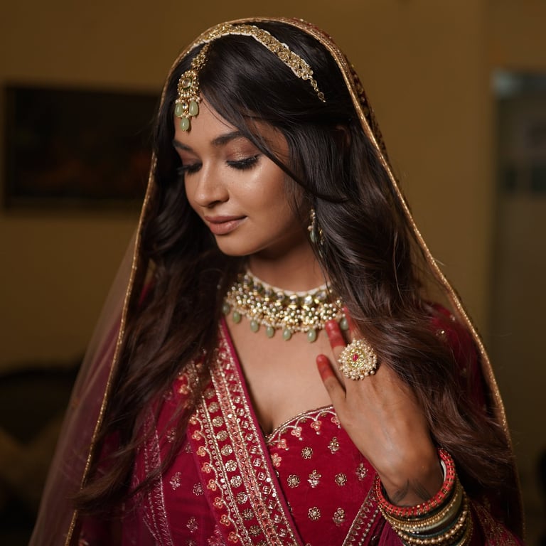 Khushboo’s artistry truly enhances natural beauty; I felt like a queen at my wedding.